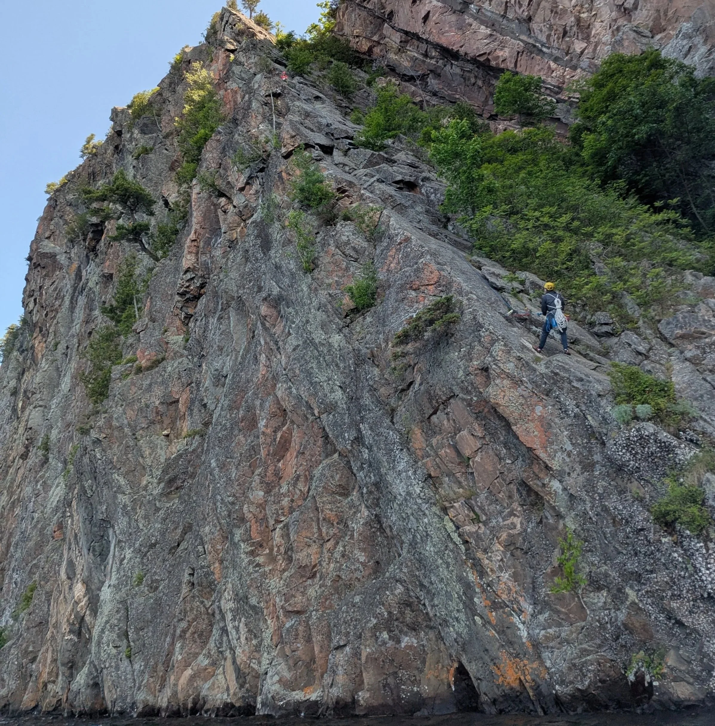 I started rock climbing this year, and I instantly fell in love with it. I’ve included my favourite picture to show people when I tell them about this, because it makes it seem extra scary for those afraid of heights. This photo was taken from the bottom of the 100-meter rock face at Bon Echo Provincial Park. In the yellow helmet is me, and in the red, much higher up, is my girlfriend, who introduced me to the sport. What I enjoy most about climbing is that it feels like a high-stakes puzzle, which requires strength and courage to solve. The feeling of being stuck, hundreds of feet up, not knowing where your next hand placement is going to be, knowing any miscalculation will result in you swinging on the rope has to be one of the most thrilling things I have experienced.